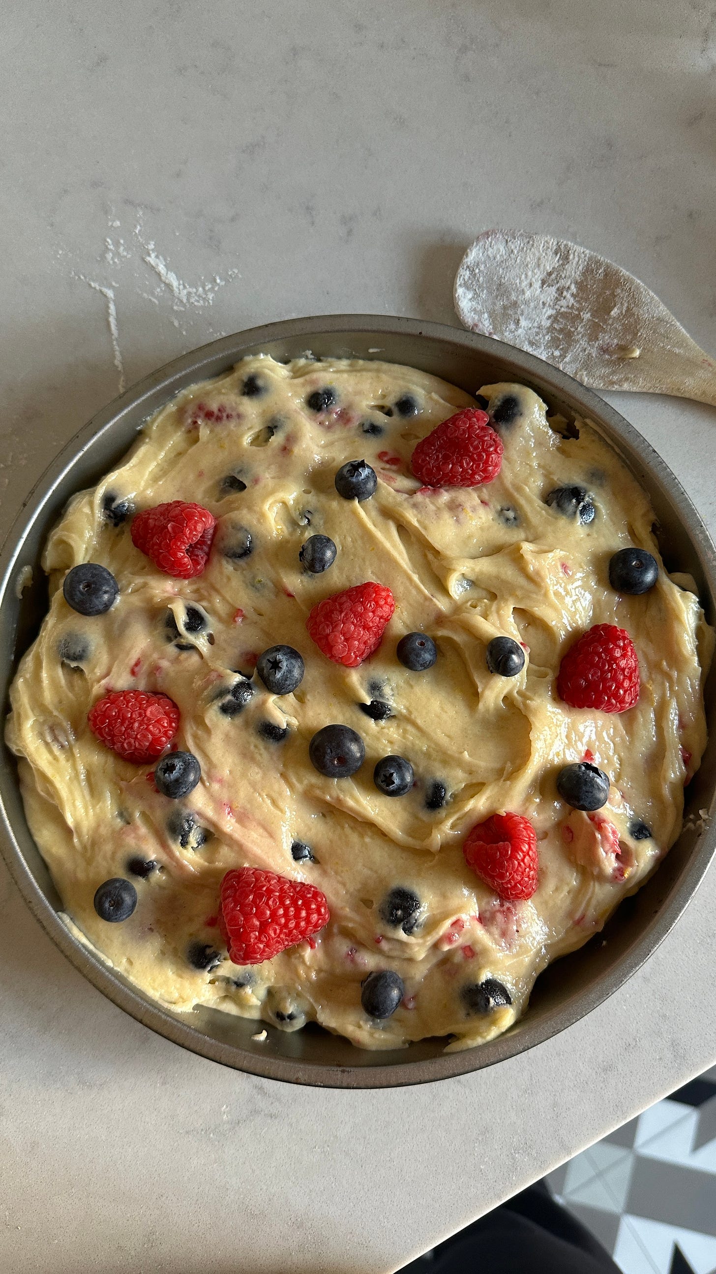 ps: i also made a DELICIOUS berry cake for my friend bruce for our shared birthday on thursday evening (he loves a berry dessert). i found the recipe on pinterest, so i can take no credit, but i’ll tell you: this cake got rave reviews! i forgot to snap an after photo, but here it is about to go into the oven. pretty AND delish! i can’t wait to make it again.