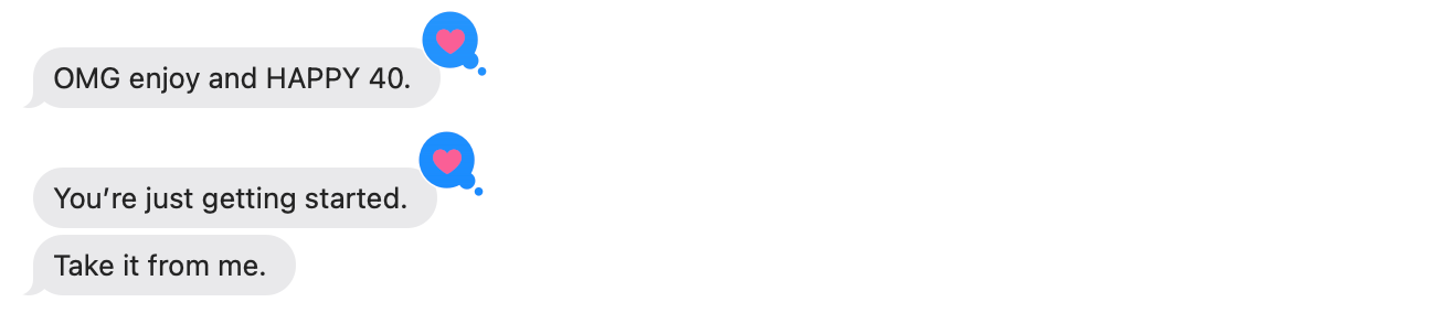i intend to write a bit more cogently about turning 40 this week, after my brain has a moment to reset—but ‘til then, thank you, as always, for being here. thank you for sticking around when i’ve written less, or written more, or written entirely incoherently ramblings about my sometimes insane brain. when you guys tell me this newsletter is your favorite thing to receive in your inbox, it makes my day. every time. this creative practice—the art of opening up my laptop and typing out my feelings to 3000ish strangers who don’t feel like strangers each week—it feels a little something like lightning in a bottle. it is a form of therapy for me, and i hope, sometimes, for you, too. ❤️