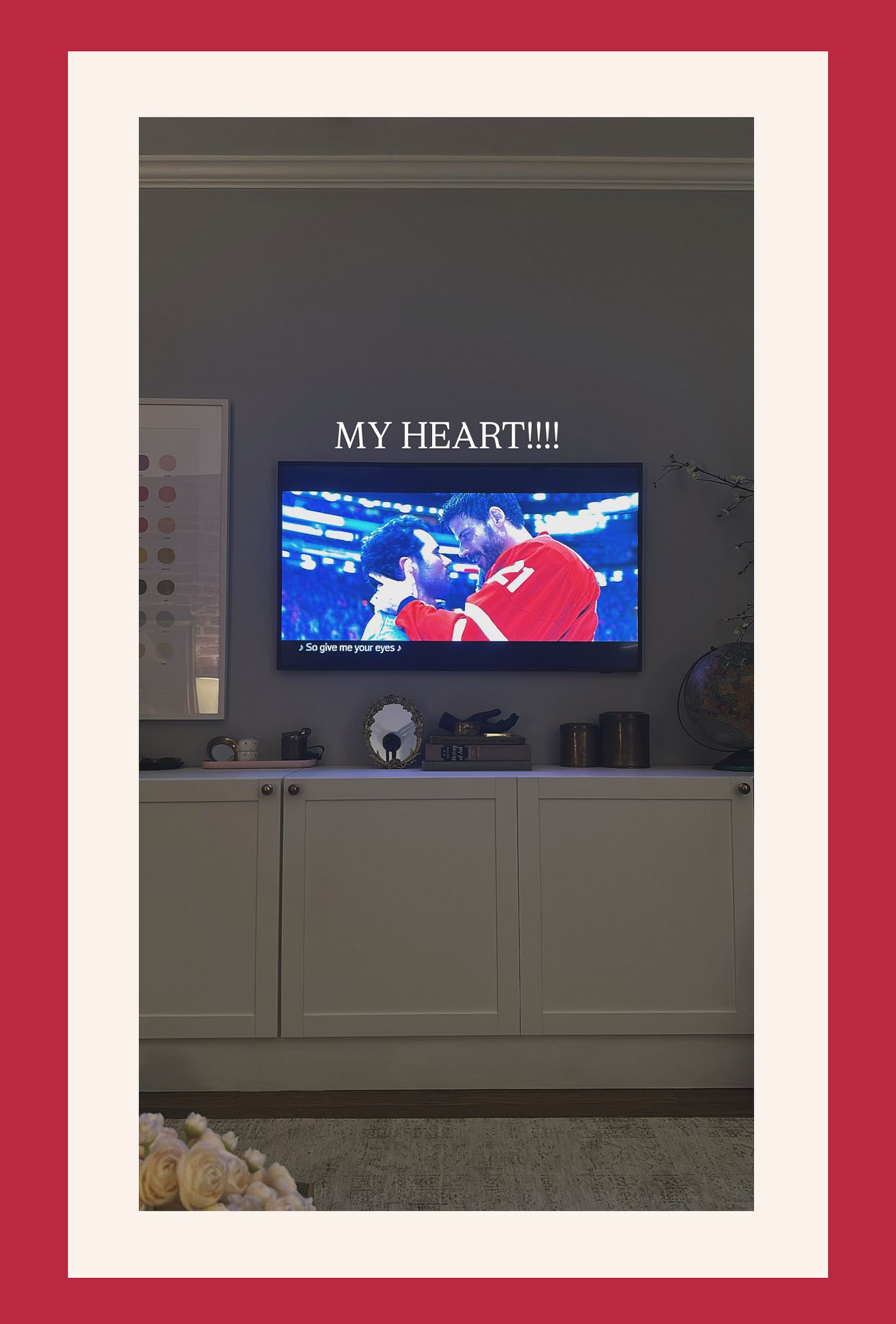 after i finished heated rivalry, i texted my family group chat and said everyone had to watch it. ten minutes into the first episode, my mommy said she wasn’t sure. too much sex! why so much sex?! i told her to keep watching. she would like it, i promised. the sex was just a part of the story. i knew, in particular, that she would love the moment pictured above—and also that she would love the very last scenes (no spoilers, but if you know, you know).