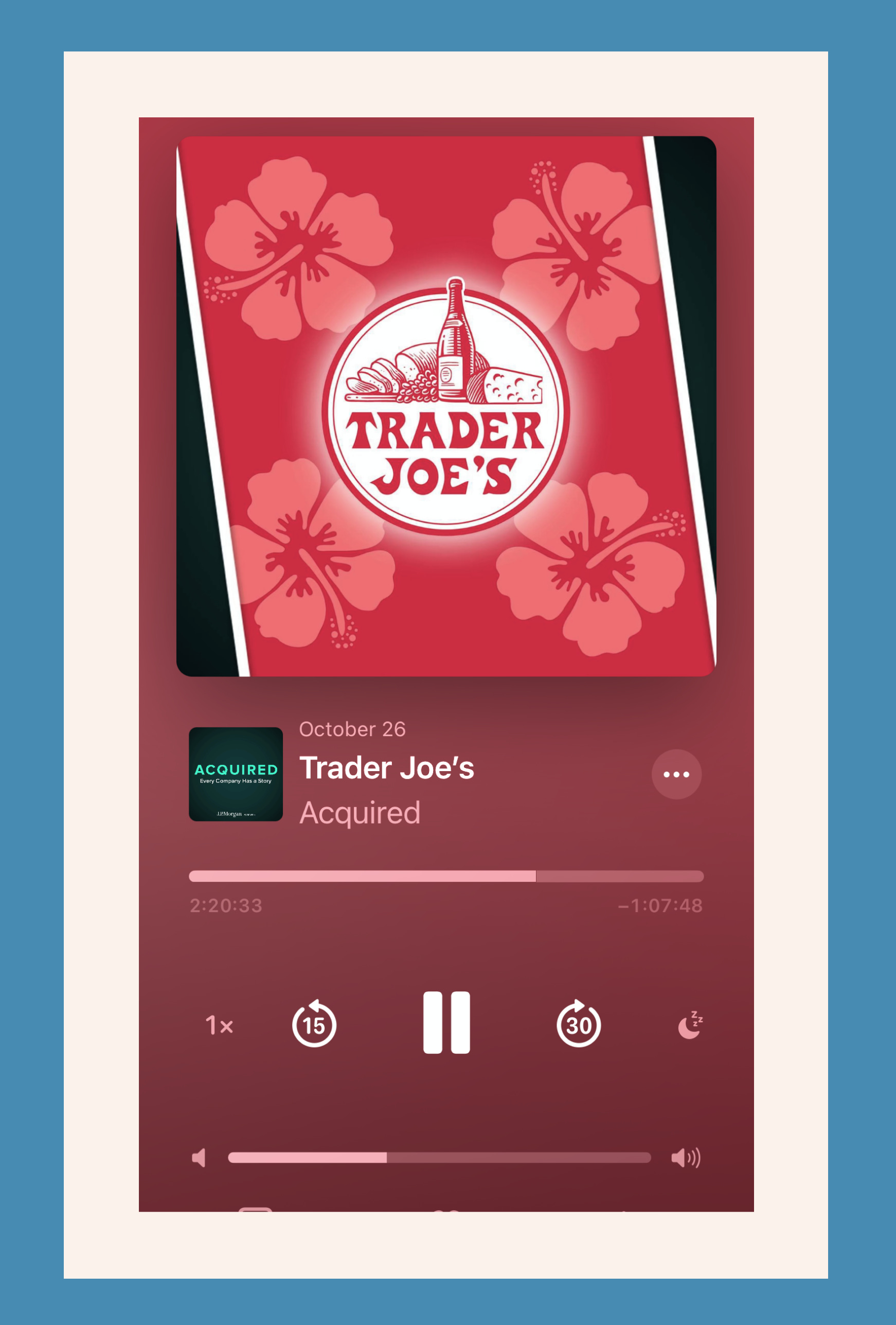 it always surprises me to say this, but i love (love!) the acquired podcast. i am not a business-minded person, nor a particularly entrepreneurial person. and i am definitely not a numbers person (please never ask me to do math, even basic math scares me). but somehow, against all odds, i love acquired, a podcast that dives deep into the history, business strategy, and stories of the world’s greatest companies. think: apple, google, IKEA, starbucks, meta. acquired’s episodes are long—like, multiple hours long—but they never feel it. instead, each one feels like a mini-audiobook experience. the hosts are intelligent, thoughtful, and charming, and they manage to break down complex (at least to me!) business concepts in a way that makes perfect sense to the average listener. their costco episode is a sight to behold (an audio experience to behold?!). it’s fascinating, really and truly. ditto the IKEA ep.